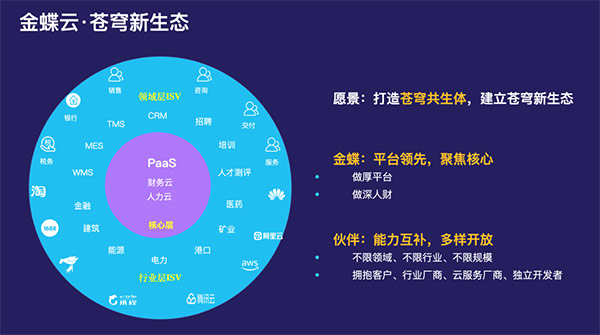 本屆蒼穹峰會(huì)上,金蝶發(fā)布了以蒼穹PaaS平臺(tái)為核心的生態(tài)戰(zhàn)略,秉承“平臺(tái)+生態(tài)”戰(zhàn)略,金蝶向全球征集基于蒼穹平臺(tái)的ISV合作伙伴、IaaS合作伙伴、咨詢合作伙伴,并攜手客戶共商、共建、共享生態(tài)體系。金蝶云·蒼穹始終關(guān)注吸引有行業(yè)競爭力的伙伴加入,目前蒼穹應(yīng)用市場已入駐生態(tài)伙伴總數(shù)超過200家。蒼穹以分布式架構(gòu)的彈性伸縮能力,大幅提升可靠性與性能;基于金蝶動(dòng)態(tài)領(lǐng)域模型架構(gòu)的低代碼開發(fā)平臺(tái),可以讓ISV開發(fā)者效率提升500%以上;并提供豐富的微服務(wù)和AP,讓ISV伙伴可以最大限度利用平臺(tái)的開放能力。