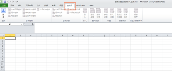 第二步:點(diǎn)擊【金蝶云星空數(shù)據(jù)引入工具】或任意Excel文件來打開該工具,在打開的Excel中可以看到一個【金蝶云】頁簽。