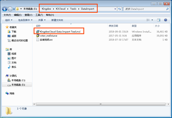 2) 通過執(zhí)行第一個文件來安裝數(shù)據(jù)引入工具(如果安裝中遇到問題可以參考“安裝說明.txt”來解決)。